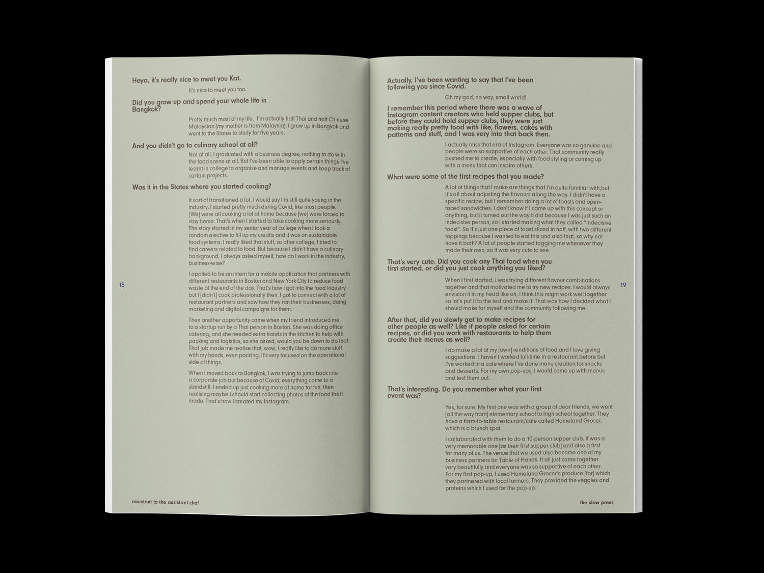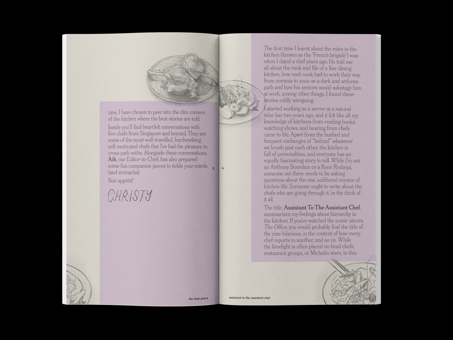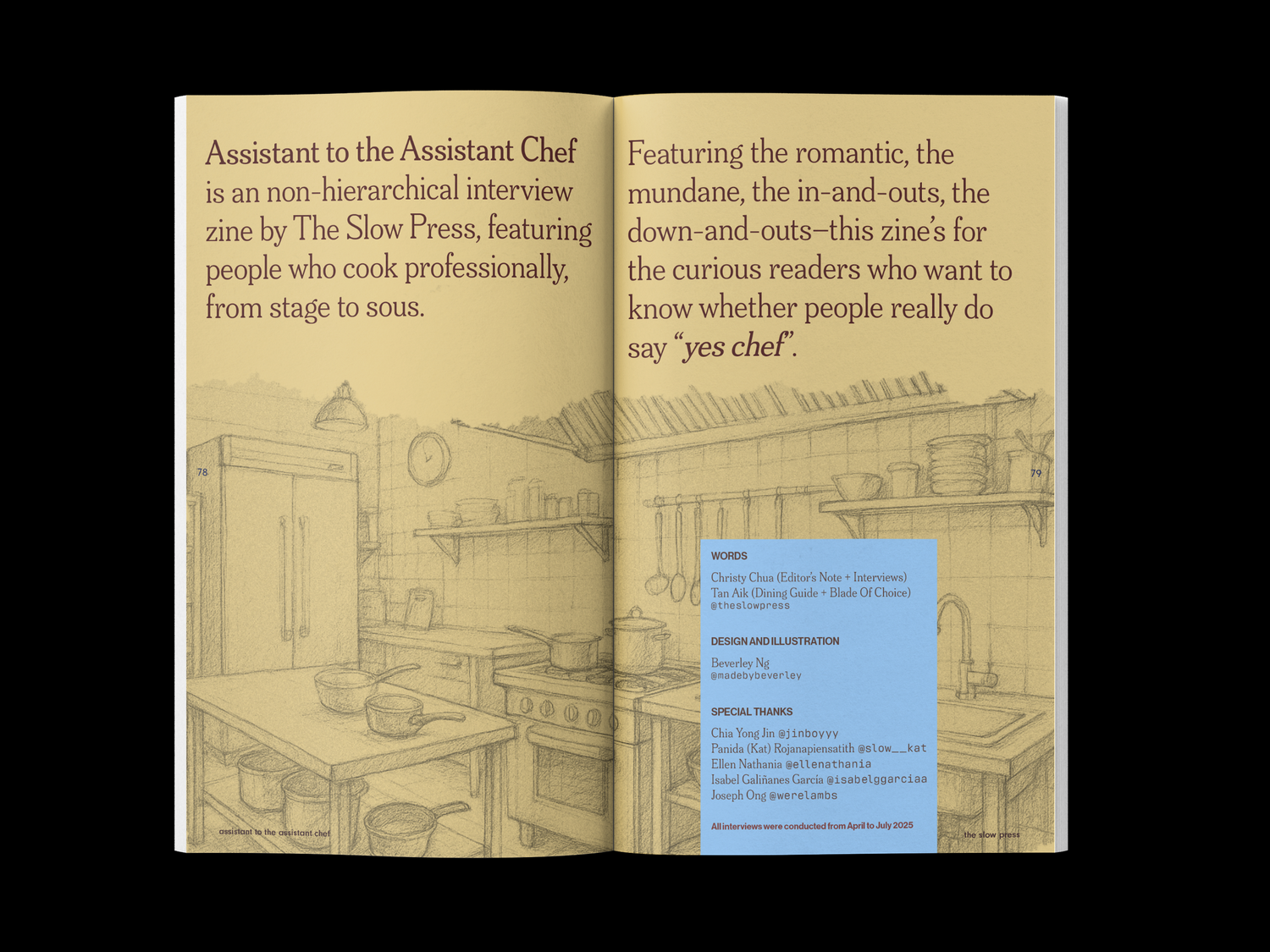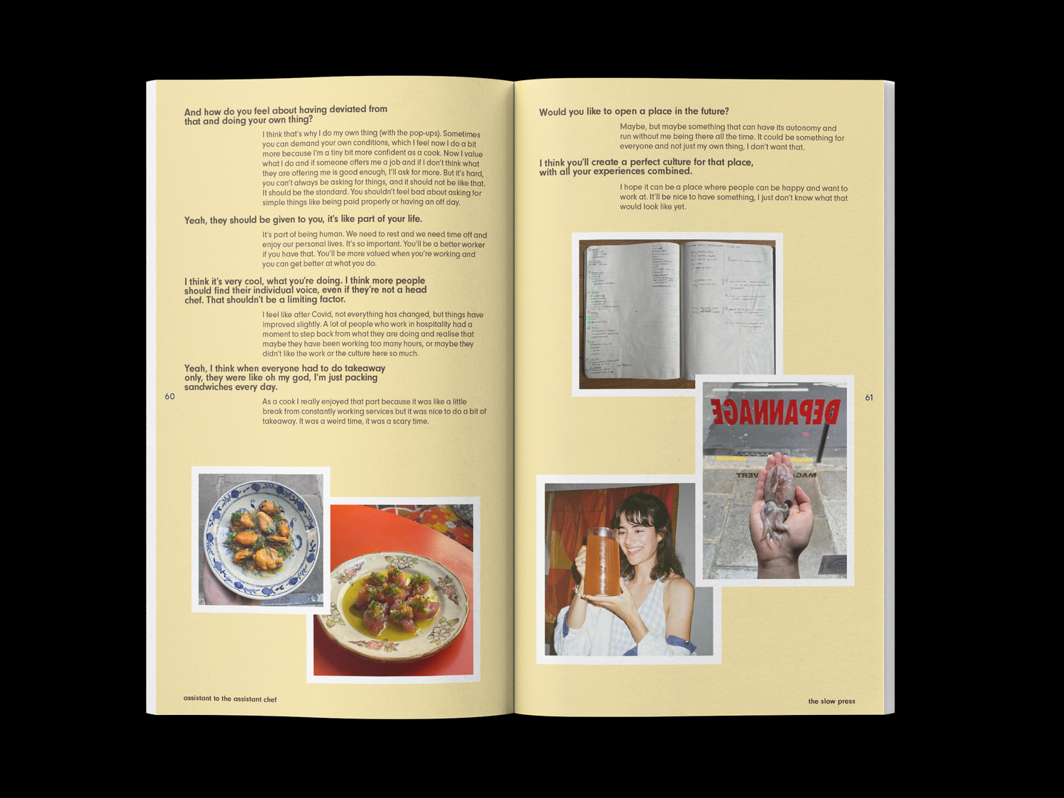 Assistant to the Assistant Chef is a non-hierarchical interview zine by The Slow Press featuring people who cook professionally.