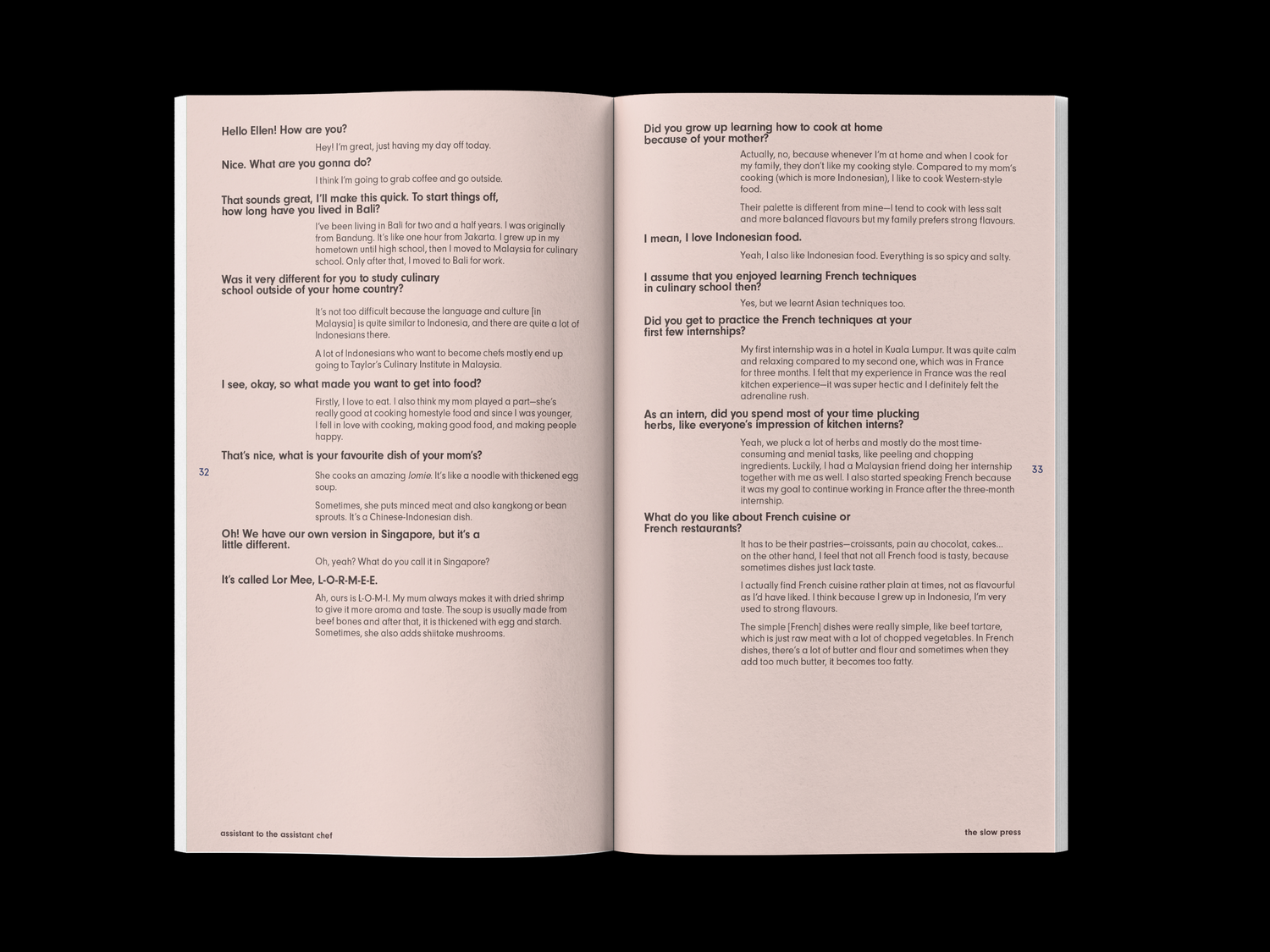 Assistant to the Assistant Chef is a non-hierarchical interview zine by The Slow Press featuring people who cook professionally, from stage to sous. Featuring the romantic, the mundane, the in-and-outs, the down-and-outs - this zine’s for the curious readers who want to know whether people really do say “yes chef.”