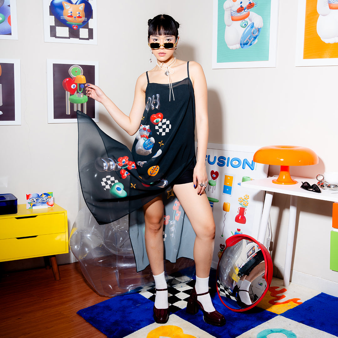 Fun Scheme See Through Dress