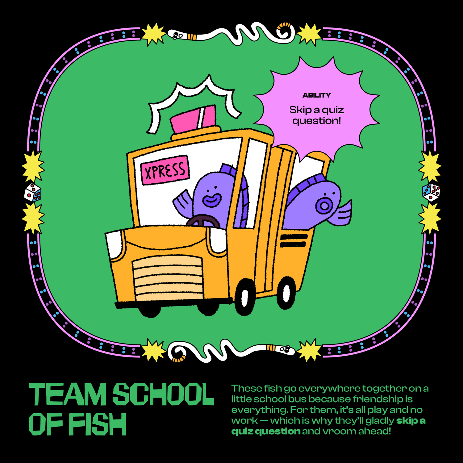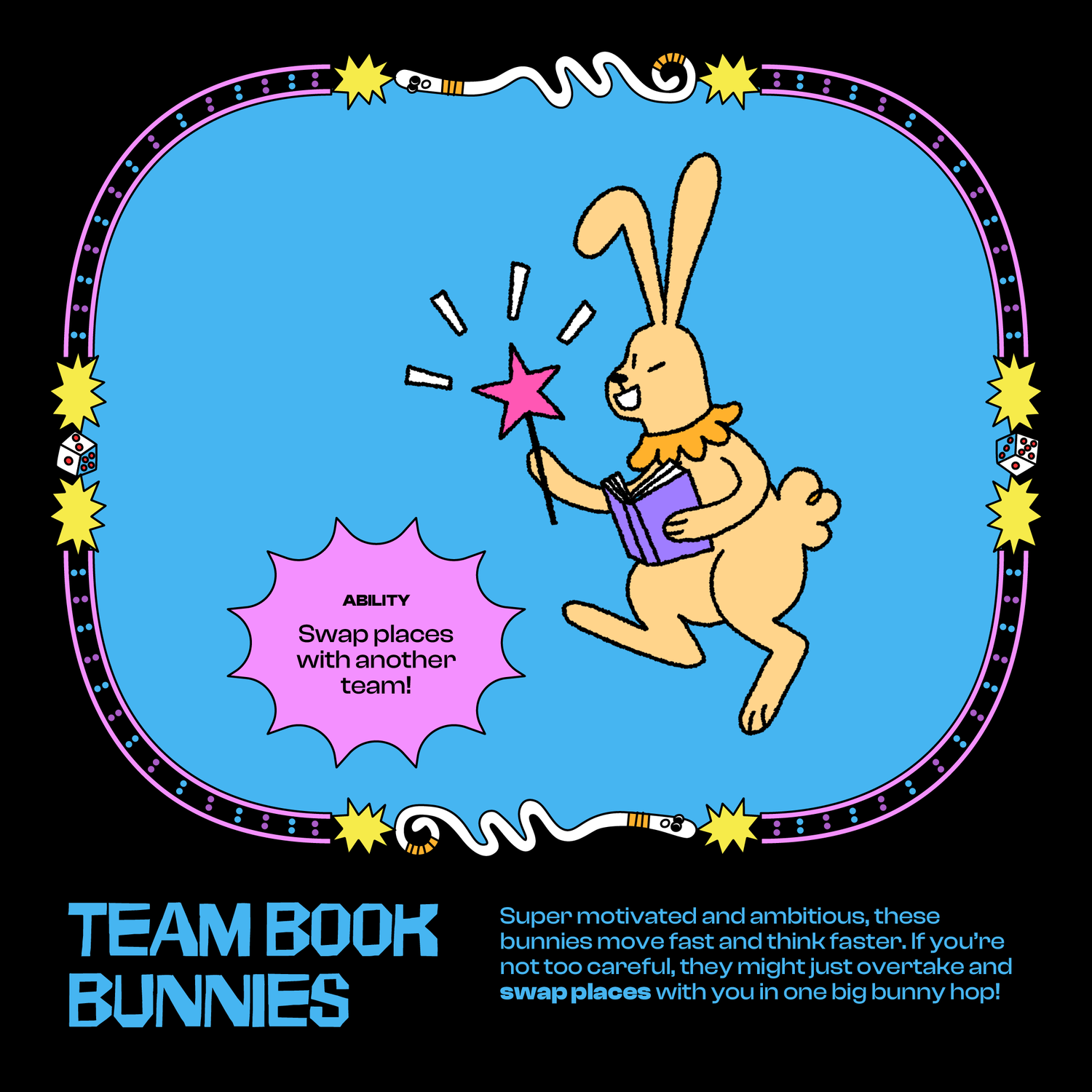 Four teams, one race to the top in a life-size game of Snakes & Ladders! Work together with your new friends to climb ladders, dodge worms, and answer quiz questions. Each team's mascot has a special ability that might just help you outplay everyone else!
